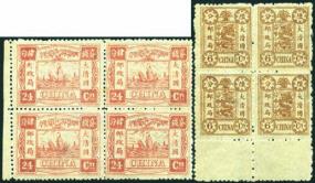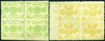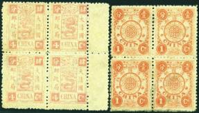 1897 Dowager Mollendorf 1cd to 24cds complete set of 9 in blocks of 4, 4cds, 6cds, 9cds, 12cds and 24cds all with sheet margin,