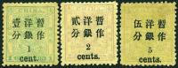 1897 Small Dragon Small figures surcharged, 1c to 5c complete set, mint and toned. Chan 31-3. Photo