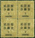 1897 Small Dragon Small figures surcharged 2c on 3cds mauve block of 4, toned and no gum. Chan 32. Photo