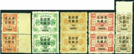 small thin on top stamp, 4c on 4cds surface colour faded, unmounted mint and fresh. A scarce set in pairs. Chan 37-46. Photo