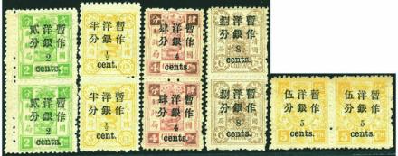 1897 Dowager Small figures surcharged 1/2c to 30c set of 10, all with vertical pairs, except 5c on 5cds horizontal pair, 1c on 1cd