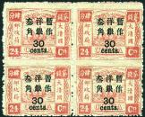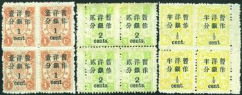 1897 Empress Dowager commemorative issue, Second printing surcharged with large figures, wide spacing complete set of 9 in