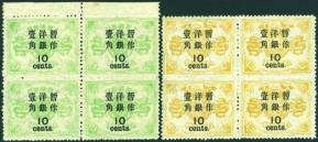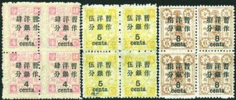 mint blocks of 4. Full original gum with tiny hinge remains on some values. Very fresh colours with no toning. Extremely rare in