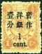 stamps with surcharge 'cents' large part omitted variety, not listed in any catalogue. Full original gum lightly hinged. Chan 58var.