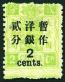 1897 Dowager Large figures surcharged 1.50mm on 2nd print, 2c on 2cds yellow green with design dramatically shifted upwards