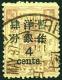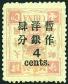 1897 Dowager Large figures surcharged 1.50mm on 2nd print, 4c on 4cds pale rose with surch. inverted variety, surface colour