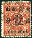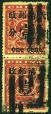 1897 Red Revenue Surch. with large characters of Chinese value, 1c on 3c red, vertical pair, used with partial strikes of pakua