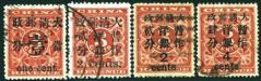 4c on 3c. All used. Chan 84, 87-9. Photo