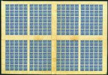 1904 Imperial Postage Due stamps, 1st London print, 1/2c blue complete sheet of 200 stuck on transparent paper, toned. Chan D7.