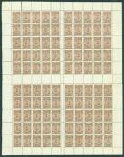 1911 Imperial Postage Due 2nd print, 1c brown complete sheet of 100, slight split perf. at right side. Light CTO, full original gum