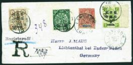 1902 (31 July) A combination cover reg. to Baden, Germany. Bearing Dowager Large Figure 2.50mm on 2nd print 2c on 2cds,