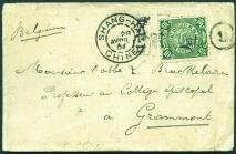 1904 (Apr.) A cover to Grammont, Belgium. Bearing Coiling Dragon 10c green tied by 'KAIGAN' '