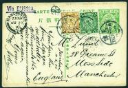1910 (13 June) A CIP 4th issue stationery pc with Coiling Dragon 1c and 2c sent to Manchester, England. Tied by bilingual