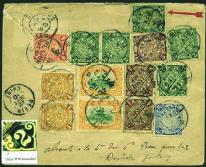 1908 (9 Dec.) A cover bearing Coiling Dragon 2c red, 2c green, 10c green and 10c blue sent to Tsingtau, tied by bilingual