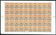 1893 Shanghai Local Post, postage due stamp 1/2c orange & black imperf. complete sheet of 50. Fresh and unmounted. Rare sheet.