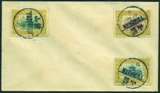 1910 (21 Nov.) Hsuan Tung First Year complete set of 3 on plain cover, tied by bilingual 'TSINSHAN' cds, very fine. Photo