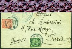 blue in pair tied by bilingual 'CHENGTU' cods, with bilingual 'SHANGHAI', 'HANKOW' and 'HAN-KOU/13.9.10' Fr.P.O transit,