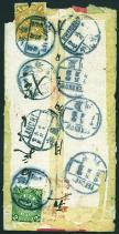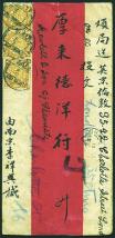1911 (19 June) A red band cover form Kinhwa to Anhwei, bearing Coiling Dragon 1c and 2c tied by bilingual 'KINHWAFU' cds,