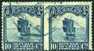 1913 London print Junk 10c deep blue horizontal pair imperforate between with pencil signature on back, used with hinged remnant.