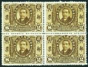 1912 Revolution $2 yellow brown block of 4, horiz. slight folded, unmounted, key value. Chan 194. Photo