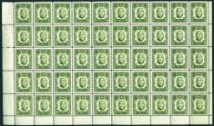 1941 SYS New York print 17c olive large block of 50 with 3 sides sheet margin, fresh surface and full original gum, 5 stamps toned