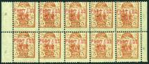 1895 Amoy Local Post opt. 'Postage Due' in red on 5c orange block of 10 with margins, 2 stamps creased. Fresh and unmounted