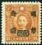 1946 Chungking Dah Tung National Currency surcharged in blue on Martyr HK Print with watermark, $20 on 3c deep yellow