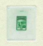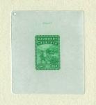 And master die proof of vignette of postman and van with value tablets in blank, printed in emerald green on India surface paper