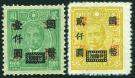 1948 SYS Chi Yang surch. Unauthorized issue 10c on CNC $100 yellow green and 40c on CNC $2,000 yellow, set of 2. Chan