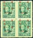 1949 SYS Foochow Gold Yuan surch. $200,000 on $40,000 SYS Dah Tung print block of 4, surch. misplaced horiz. variety, no gum