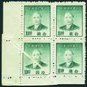1949 SYS Gold Yuan Shanghai Dah Tung print $10 green corner copy block of 4 with diagonal paper folded variety. No gum as