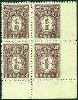 1944 Postage Due issue, 1st Central Trust print, $2 brown purple, two marginal blocks of four, one with imperf. right margin and