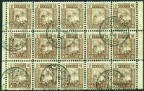 1893 Chefoo Local Post 1st issue, 10c brown block of 15 tied by double ring 'LOCAL POST/CHEFOO/31.1.94' CTO. Very fresh.