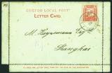 1894 (16 Apr.) A Chefoo Local Post 1c red stationery pc to Shanghai, tied by LOCAL POST/CHEFOO cds on both sides. Toning