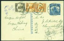 1925 (19 Aug.) ROC postal card Junk 1-1/2c, sent to Germany, added with 2nd Peking Junks, 1/2c & 1c x 2, all tied by Nanzin (