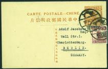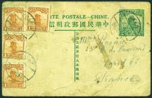 1925 (13 Mar.) A ROC Junk 1 1/2c blue stationery pc to Germany, with 2nd Peking print Junk 1/2c, 1c and 3c tied by bilingual