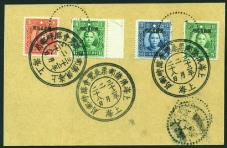 on SYS 5c, 10c, 30c and 50c tied by 'Shanghai Russia Stamp Exhibition Temporary Post Office' chop, unaddressed. Fine. Photo