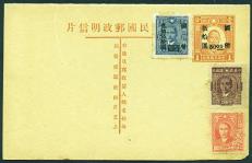 1943 (28 Feb.) A mixed franking SYS 8c green stationery card, bearing Martyrs 2c on front and opt. 'Limited For Use In Sinkiang'