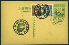 1948 (19 Feb.) An unaddressed CNC surch. $50 on $10 green SYS Torch design stationery pc tied by bilingual 'NANKING' cds,