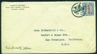 1913 (24 Apr.) A cover from Hankow to USA, via Empress of Japan, bearing opt. 'ROC' on Coiling Dragon 10c blue tied by