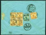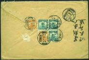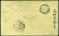 1919 (11 July) A reg. cover form Tsinan to Shanghai, on reverse bearing 1st Peking print Junk 1c x 2, 3c x 3 tied by bilingual