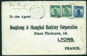 1920's A Hongkong & Shanghai Banking Corporation cover, Peking sent to Lyons, France, bearing 2nd Peking print Junk 2ct green