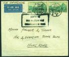 1920's An air mail cover from Kunming to Hong Kong, bearing 2nd Peking print air mail 15c green in pair tied by bilingual
