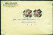 1921 (19 Jan.) A cover from Nanking to USA, bearing Peking 2nd print Junk 5c rose mauve gutter pair, each tied by bilingual