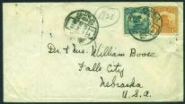 1922 (17 May) A cover from Peking to USA, bearing Junk 1c and 3c tied by char. ‘PEKING-MOUKDEN/The 4th section/19’