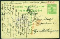 1923 (15 Mar.) Junk Peking 1st printing, 1/2c, 1c and 3c each franked on postcard size plain card, tied by bilingual 'LIAYANG'