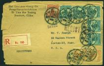 1922 (Sept.) A cover from Shanghai reg. to Czechoslovakia, bearing Junk 5c, 10c and 20c tied by faint 'SHANGHAI' cds, via