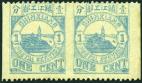 1894 Chinkiang Local Post 1st issue 1c blue hozirontal pair imperf. between and imperf. at left and right side sheet margin,