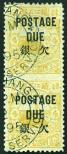 1894 Chinkiang Local Post opt. 'Postage Due' on 1st issue 4c yellow vert. pair imperf. between variety, fine used. Chan LCHD4b.