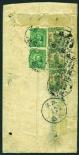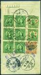 green in pair and SYS London print 5c green block of 6, tied by bilingual 'KUKIU' (